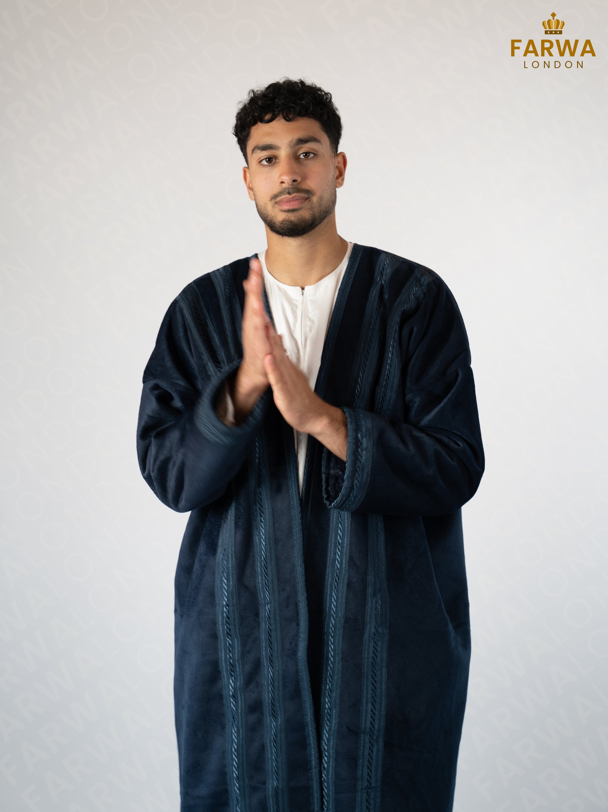 The traditional, oversized coat. Lined with fur to keep you warm. Farwa in Ocean Blue.